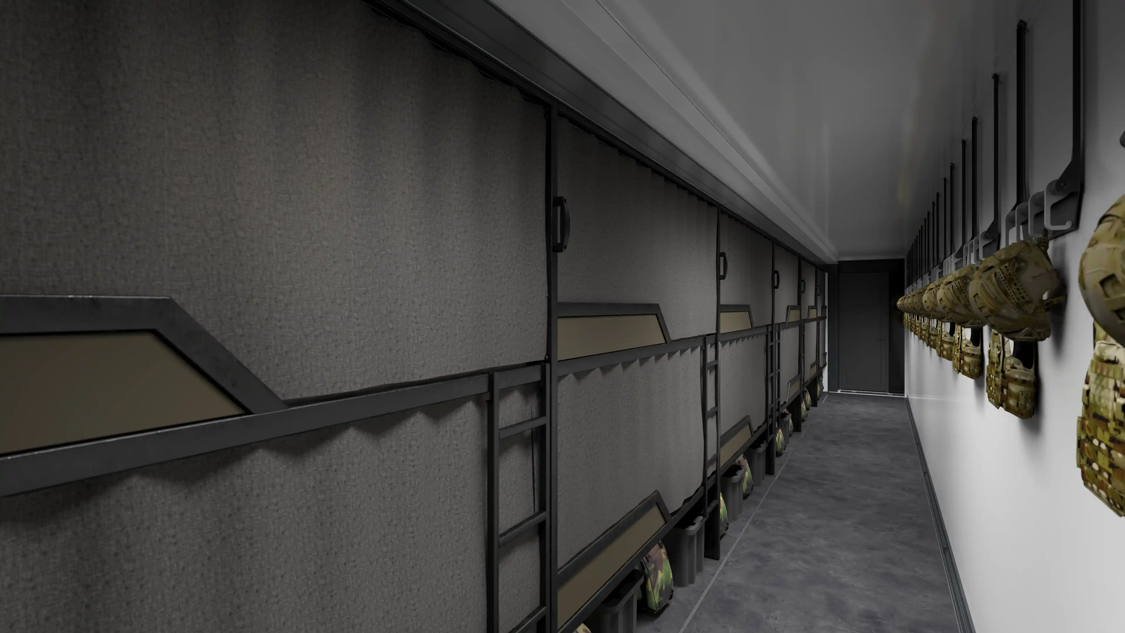 A deployable accommodation unit designed to provide rest and recovery for deployed personnel. It offers a protected and climate-controlled sleeping environment that supports sustained operations in the field.